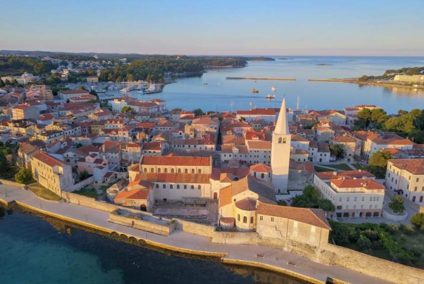 A few steps from the Cardo rises the Euphrasian Basilica, a 6th-century complex inscribed on the UNESCO World Heritage list. Its gold-ground mosaics shimmer like a sunrise, while the atrium, baptistery and bishop’s palace reveal layers of late antiquity and Byzantine artistry. Street views frame the bell tower between rooflines; turn a corner and the basilica suddenly fills the perspective. Beyond worship and architecture, this UNESCO World Heritage–listed site anchors daily life: schoolkids shortcut across the courtyard, couples rest on stone benches, and organ notes sometimes spill into adjacent lanes.